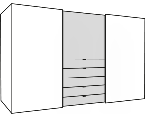 Schwebetürenschränke mit in die Front integrierten, frei zugänglichen Schubkästen. Praktisch und ästhetisch zugleich! Drei zur Verfügung stehende PICTO-Schrankvarianten überzeugen durch eine Kombination aus faszinierender Funktion und attraktiven optischem Auftritt.