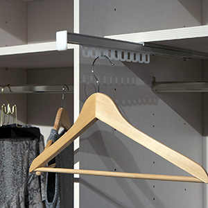 Schwebetürenschränke sind mit dem hochwertigen Innendekor Texline ausgestattet. Für die individuelle Schrankinnengestaltung können Sie auf ein umfangreiches Zubehör-Angebot zurückgreifen.